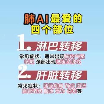 ·1、淋巴转移。常见症状:通常出现胸闷、气紧、咳嗽、颈部出现淋巴结肿块。